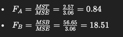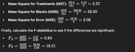 We would compare these F-values with critical values from an F-distribution table to determine if the differences are significant.