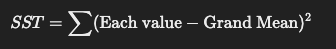 The Total Sum of Squares (SST) measures the total variability in sales: