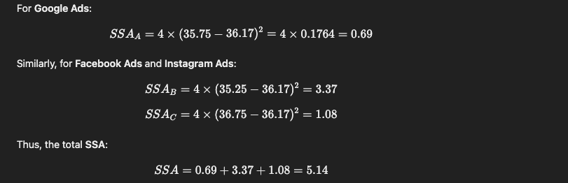 In this example, blocking by days helped control for the natural day-to-day variability in sales, allowing us to focus on whether different ad platforms significantly affect sales. While the ads might not show a huge difference, knowing that sales vary by day can help the e-commerce business make more informed decisions about when and where to allocate their ad budget.