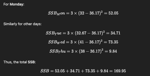 The Block Sum of Squares (SSB) measures the variability due to days of the week: